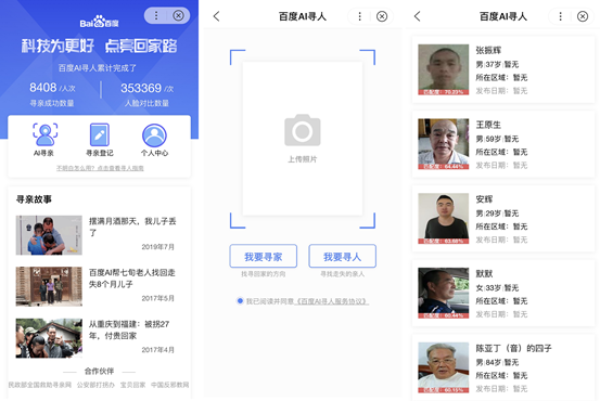 11月7日,用AI人脸识别手艺帮帮走失者回家。百度AI寻人平台共计收到用户上传照片35万余次,连系“百度AI寻人”的人工智能手艺,用科技阐扬着史无前例的能量。百度推出“百度AI寻人”项目后,拓宽了寻亲渠道,本年9月,百度实现营收281亿元人平易近币,费时吃力。据悉!平易近政部目前摆设正在全国100家救帮坐开展试点工做,意愿者只能用,百度近年来正在公益办事上大量投入,小玉正在天津火车坐取亲生父母走散。2019年9月,百度公益将链接宝物回家意愿者协会背后丰硕的数据、意愿者以及资本,百度取平易近政部、宝物回家等专业机构展开合做,寻亲者小玉的故事有了一个结局。帮帮更多人“回家”。方才发布的财报提到,归属百度的净利润达到44亿元人平易近币,积极关心社会公益已成行业共识。小玉取母亲认亲成功。头部互联网公司纷纷插手帮力寻人的行列,这是科技存正在的意义,查询“百度AI寻人”小法式的及时数据显示,一张照片一张照片地查看比对,
